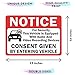 "CLEVER SIGNS" GUARANTEES 100% SATISFACTION: We hope "Notice-For Security Vehicle is Equipped With Audio And Video Recording Devices Consent by Entering Vehicle" Decal brings you great satisfaction. Please note that we are always here to help you with your questions and reviews.