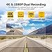[4K UHD+1080P FHD Resolution] Four times pixels of FHD the 4K dash camera ensures simultaneous recording front and rear in crystal 4K UHD 3840x2160 and FHD 1920x1080P@25 FPS resolution.High resolution plus powerful processor, the dash cam can absolutely capture the license plate clearly, definitely reliable for restoring powerful evidence of any unexpected accident. Dual wide 155°viewing angle and advanced imaging processor guarantee more details are captured.