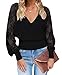 The most stunning and cute lace sweater tops! Deep v neck with ribbed knit front and back, lace crochet lantern sleeve, batwing long sleeves, flattering fit, cozy material, easy to care.