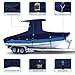 【QUICK AND FIRM FIT COVER】 Heavy duty elastic cord sew in around hemline for secure and snug fit;Integrated metal buckle and adjustable strap tightening system provides easy installation and quick release.Center console boat cover features full-length zippered entry on sides for easy in and out.