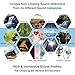[64 Non-Looping Sounds] 16 Categories to choose from with 4 richness options per category totaling to 64 unique sounds. Rich & immersive sound categories include: Rainfall, Ocean, Brook, City, Baby, Rides, Home, Crowds, Meditate, Small Fan, Large Fan, White Noise, Pink Noise, Brown Noise, Waterfall, and Meadow