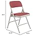 Folding chair with fabric upholstered seat and backrest and steel frame for temporary seating and efficient storage when not in use