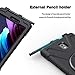 🎅 FEATURES: 1. BUILT-IN SCREEN PROTECTOR--High transparency and anti-scratch; 2. Built-in elastic Pencil Holder--Keeps pencil safety; 3. Built-in Kickstand--Better typing; 4. Built-in Kickstand--different viewing angles; 5. Shoulder Blet--Adjustable and detachable