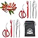 Professional Seafood Tools Set: Total 7 products, including 2 Lobster Crab Crackers, 2 Red Lobster Shell Knife, 2 Stainless Steel Seafood Forks and 1 Seafood Scissors.