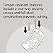 Tamper-resistant features include 2 one-way security screws and full steel construction prevents cutting
