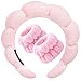 【SPA HEADBAND and WRISTBAND MATERIAL】 Spa headband and wristband set is the perfect solution.Bubble Spa headband for women the sponge lining used and the terry cloth covering the surface. These skincare headbands have a grwm water absorption function and can be used when you are washing your face, skincare or makeup. The wristbands are made of quality coral fleece.And wristbands also have good elasticity, can be stretched to fit your wrist better.