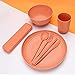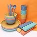 Material: The camping dinnerware set is made of Wheat Straw and plastic.This is set has vibrant color, lightweight and doesn't get stained.