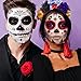PERFECT DAY of the DEAD MAKEUP KIT: A wide variety of designs for makeup. Skeleton face tattoos perfectly match the Halloween costumes for women and men
