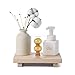 ENVIRONMENT-FRIENDLY WOOD PEDESTAL STAND: Be different from other plastic, glass or steel materials, Our soap dispenser tray is made entirely of pine, so it's environment- friendly and safe.