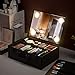 【Makeup Case with LED Lights and Mirror】Two rows LED lights built in 4K full-screen mirror, instead of bulbs and save space. One-touch to switch 3 cold light: cold light, natural light, warm light. Long press to adjust brightness from 0% to 100%.