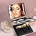 【Makeup Case with LED Lights and Mirror】 Comes with 4 LED lights built in full screen mirror instead of bulbs saving space. 3 color scenarios light and adjustable brightness. One-touch switch light mode, long press to adjust brightness.