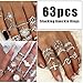 🔥PACKAGE&GIFT🔥Comes with ZZHDCC a jewelry bag and 63 pcs vintage rings. Stylish body jewelry for women, friends, family, girlfriends, wife, mother on anniversary, birthday, party, Thanksgiving Day, Christmas or any special day. Also a great idea for yourself.