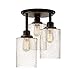 Farmhouse Industrial Design: Farmhouse flush mount light features a durable metal frame in briarwood finish...