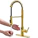 Commercial Kitchen Faucet: Brushed Gold Kitchen Sink Faucet with Gold Sprayer. Single lever design for...