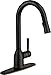 This black single hole bathroom faucet features durable lead free solid brass construction and a...
