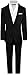 Dark gray single breasted notch lapel jacket.White shirt.Dark gray vest and necktie.Pants with elastic waist,...