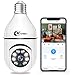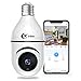 [3MP & Pan/Tilt Capacity] - 3MP WiFi bulb camera rotates 355 degrees horizontally, flips 90 degrees vertically, allowing you to control the viewing angle of the camera via the APP to achieve 360°observation. 3MP HD security bulb camera provides you with clear real- time videos and 360° panorama. You can enjoy images and videos in higher quality via the camera.
