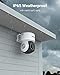 IP66 Waterproofing and Two Installation Methods: This ptz camera is equipped with an IP66 weatherproof outer shell to operate even in extreme weather conditions. The Wi-Fi camera supports wall or ceiling installation, so you can place WLAN cameras on outdoor roofs or in parking lots, garages, driveways, and gardens.