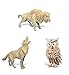 INCLUDED WITH THE PURCHASE OF WILD ANIMALS WOODEN PUZZLE BUNDLE PACK OF 3 - This Wild Animals Puzzle Bundle Pack of 3 includes 1 Owl 3D Wooden Puzzle wood craft construction kit with 146 interlocking puzzle pieces measuring 4.5”Lx4”Wx7”H, 1 Wolf 3D Wooden Puzzle with 42 pieces measuring 9''Lx3''Wx6''H, and 1 Buffalo 3D Wooden Puzzle with 54 interlocking pieces measuring 10”Lx2.3”Wx5.3”H. Each puzzle includes instruction manual & 1 paper for sanding edges. Paint & glue not included.