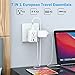 7 IN 1 Europe Travel Essentials - The European travel plug adapter provides 4 AC outlets(Three 2-prong and one 3-prong), 2 USB-A and 1 USB-C charging port, allowing you to charge 7 devices simultaneously, ideal for cell phones, tablets, pads, and power banks. Total DC output is 15W, 3 USB Ports can charge up to 3A, fast charging for your USB devices.