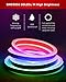 【DIMMABLE PREMIUM LED】Uses high-quality LED chips of SMD 5050 60LEDs/M with a vivid color rating of CRI 80+ for ambiance lighting decoration. The colorful LED neon strip light has 14 colors and 3 modes for choice. Select different colors or modes, and dim or brighten the neon lights to match the corresponding atmosphere and festival.