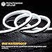 【Reasonable Ambient Lighting】 Suitable for both indoor and outdoor lighting decoration IP65 Splash-proof, and the led neon strip light is flexible bendable for home and business lighting projects, like room, ceiling, patio, cabniet, lawn lights, steps, garden, yards, landscape, tree highlights lighting and signboard making. Fully waterproof all the connections when using it outdoors, also a great choice of lighting decor for your festival scene to surprise your family and sweet kids.