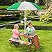 Shady Umbrella: This kids table comes with a 6-rib umbrella for eating meals, playing games, and doing activities in the cool, comfortable shade, where kids are less prone to sunburns. The umbrella can be removed and folded, and it adjusts in height.