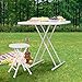 COMPACT & FOLDABLE YOU CAN TAKE WHEREVER YOU GO - This portable table is made of well made material. It is anti-rust and waterproof, which durable and is safe for use with smooth and curve corner design. This folding table is 7.3lbs folded size in 28.7''L x 17''W x 4.5''H. For the stool, it is 2.3lbs folded size in 10.3''W x 2.3''H. You can adjust the stool height from 2.3'' to 16.5'' to the request height. Suits for most people. The updraded structure make it firmly and steady once in use.