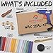 🎁 UPGRADED WAX SEALING STAMP KIT: Anezus sealing wax kit comes with approx. 756 pieces wax seal beads in 28 different colors, 5 wax stamps, a handle, a wax warmer, a wax melting spoon, 10 tealight candles, 10 vintage envelopes, a tweezer, a bundle jute twine, 2 metallic pens, 1 user manual and a gift box. Includes all you need for wax seal, crafts and decoration