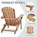 NATURAL WOOD CONSTRUCTION: Our folding wooden adirondack chair is made from solid wood, with ultra fine wood grain, long-term anti-corrosion, extra strength, and natural wood smell; overall size 36"(Height) x 31"(Depth) x 28"(Width) ; recommended maximum weight capacity: 220 lbs