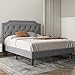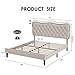 【Classic & Modern Charm】The queen bed frame is completely upholstered and padded for a premium look and feel. High quality linen fabric is selected to add tailored touch and upscale aesthetic. Graceful arched profile, classic bronze nailhead trim, diamond stitches and tufted button lend chic and subtle beauty, setting the tone for a bedroom of livable elegance