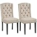 【Sturdy Construction】Our dining chairs are crafted of a solid wood frame and rubber wood legs to ensure a high weight capacity of 140 kg / 309 lb. The durable polyester fabrics are trimmed with bronze-finish studs for a smoother and tighter surface.