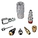 Included: 1/4" NPT industrial fitting and universal quick connect coupler, both made of brass to resist rust and corrosion