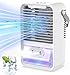 5 in 1 Function: This is a mini personal air conditioner, small evaporative air cooler, portable ac and cool mist humidifier. Also thereโs 7 colors LED light in the air cooler. It can be used as a night light or beside lamp.