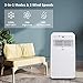 【3-in-1 FUNCTIONALITY】The compact and modern air conditioner portable unit has 3 modes- cooling, dehumidifying and fan. With a quiet performance for peaceful sleep, work and relaxing time. Cool mode provides powerful cooling in hot days. Dehumidifier mode can reduce humidity, can remove up to 40 pints of moisture a day. Fan mode with two different fan speeds circulates air, satisfying your ventilation needs. Efficiently keep you cool and comfortable during the summer