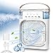 🧊💦【3 Wind Speeds & 2 Humidifier Modes】Portable mini air conditioner with 2 humidification modes, adjustable strong/weak misting function, 3 wind speeds - low/medium/high. 90°oscillation & fan blades can be adjusted by 45° to increase the cooling area. This small portable air conditioner comes with a soft handle strap, 5.5*5.1*10.1 inches air conditioner portable for room,camping, traveling, etc.