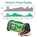 MULTIPLE PROTECTION & SAFETY OF USE - This Automatic Smart Battery Charger owns safety technology including built-in circuit protection, spark-free system, reverse polarity protection, over-charge, over-voltage and over-temperature protection, and stable performance for longer life.