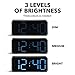 EASY TO SETUP & 0-100% DIMMABLE DISPLAY - All buttons do one task and are clearly labeled makes setting the time or alarm extremely intuitive and straightforward. Large easy to read blue LED digits(1.5-inch tall) that can be easily viewed from a distance and the brightness can be easily adjusted from very bright to fully dark with the simple dimmer dial, which is nice for sleeping so you don't have a bright light in the room. 12 or 24 hour time display optional.