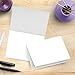 Textured white 4.25 x 5.5 customizable note cards have micro-perforations for easy separation and are scored for precise folding; 50 envelopes included