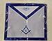 Blue Lodge Master Mason Apron with Machine Embroidery on it. Size (14x16 inches) Blue Ribbon around border Back Side blue Pocket and snake set belt.