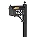 TRADITIONAL MAILBOX AND POST SYSTEM: The Oak System features a traditional American Eagle embossed on the front door. All components of this system feature a smooth rust resistant black finish. The metal mailbox measures 18.75" Long x 8.75" Tall x 6.25" Wide and sits atop the strong 6-foot tall post. Your purchase also includes up to 5 solid brass or reflective gold address numbers for each side of your address plaque.