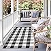 【EASY TO CLEAN】- Just vacuum or shake our black and white plaid rug to keep fresh, Machine washable outdoor rug on delicate cycle, air dry to protect and extend the life of your black and white check rug, no dryer no bleach | black and white patio rug, black plaid throw rug, plaid rig