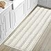 Multiple Options: 10 neutral colors available with this oversize rectangle striped pattern, rug measures 1.4' x 3.9' | 17" x 47", chenille pile height: 1.2 inch. Must add a welcome layer of comfort to your bathroom floor