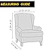 ☁ 2-PIECE COVERS DESIGN: 2 piece wingback chair cover including 1 base cover and 1 cushion cover. which make a better fit and perfect stretch to all edges, smooth and wrinkle free. Fits most wing chairs that are 27.5"-31.5"long, 37.4"-43.3"high, and 31.5"-36.2"wide.