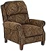 Three-way recliner chair from the Kensington Hill brand. Features hand-applied nailhead trim accents. Warm brown paisley polyester fabric. Rolled arms.