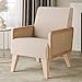 [STYLISH FUNCTION] Sit on a chic accent chair that captures the retro aesthetic from past eras such as the 70's and mid-century design standards. The raised arm rests are woven with plastic rattan with hole sleeves allowing room for air flow and a touch of exotic looks. A rattan design is unique and brings outdoor scenic vibes into your home.