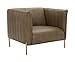 Leather on a sturdy wood frame with aluminum legs in a brass finish