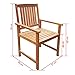 Color: Brown,Material: Solid acacia wood,Dimensions: 22.4" x 23.6" x 36.2" (W x D x H),Seat width and depth: 18.8",Seat height from the ground: 17.3",Armrest height from the ground: 24.4",Easy assembly,Delivery includes 2 chairs