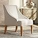 Upholstered in a soft ivory fabric, this swivel chair features a low back and flared arms that create a seamless and stunning silhouette. High-density foam offers superior support and may feel initially firm. Over time, the foam will soften and provide optimal comfort