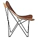 Color: Brown; Material: Real leather with a brown finish, iron with powder-coated finish; Dimensions: 28.7" x 29.9" x 31.9" (W x D x H); Foldable design; Assembly required: Yes.